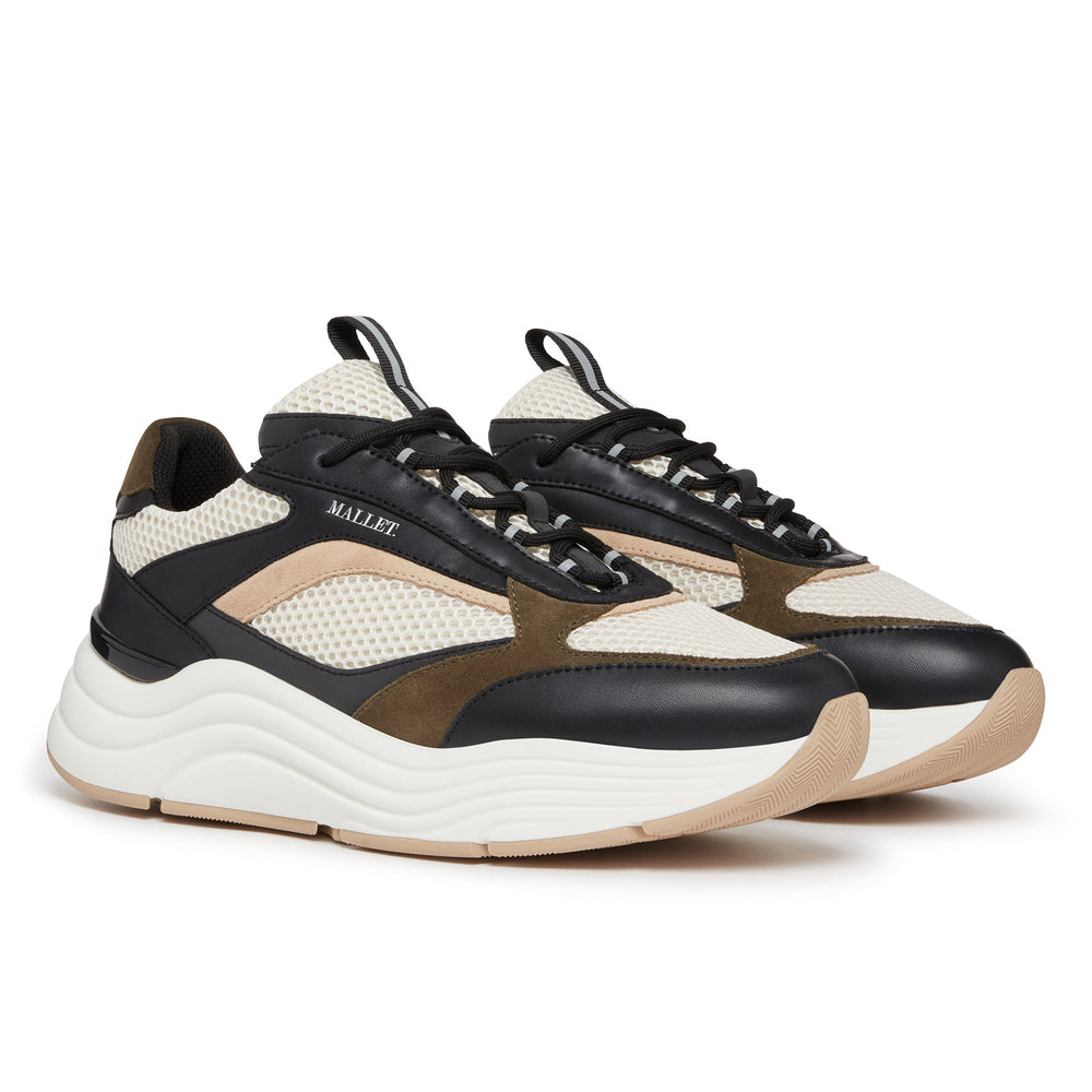 Für alle, die ihrer Garderobe einen sportlichen Touch verleihen möchten, bietet der Mallet Cyrus 2.0 Triple Black Silver die perfekte Balance aus sportlichem Stil und Luxus. Mit seinem eleganten schwarzen Leder und den reflektierenden Metallic-Akzenten strahlt dieses Paar Streetwear-inspirierte Energie aus und behält gleichzeitig einen hochwertigen Look.