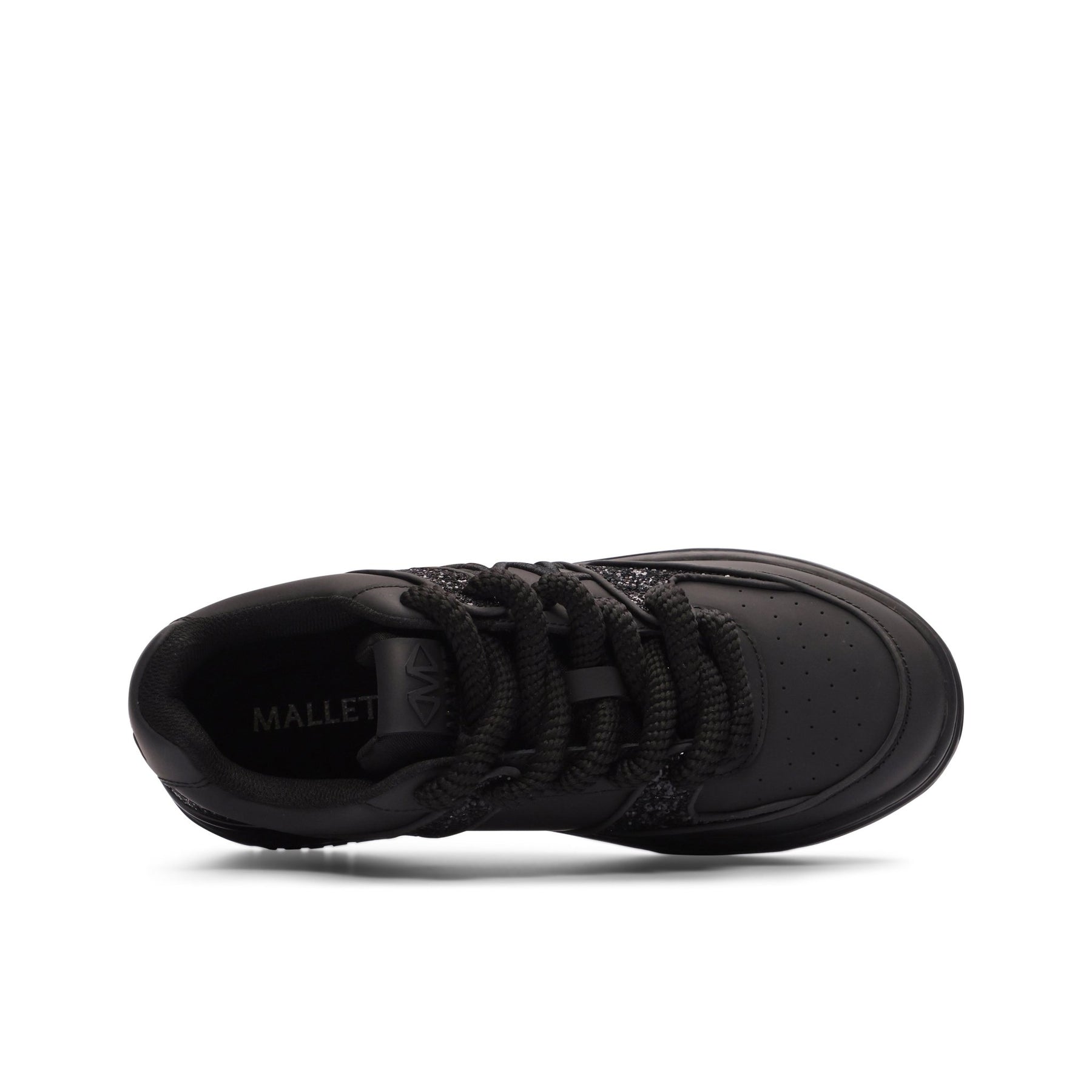 Modern, bold and versatile, the Clayton Black Spark sneakers capture Mallet London’s signature mix of urban style and craftsmanship. Designed in London, these premium sneakers feature black leather underlays with sparkling overlays, reflective piping, and embroidered diamond monogram detailing for a polished streetwear edge.
