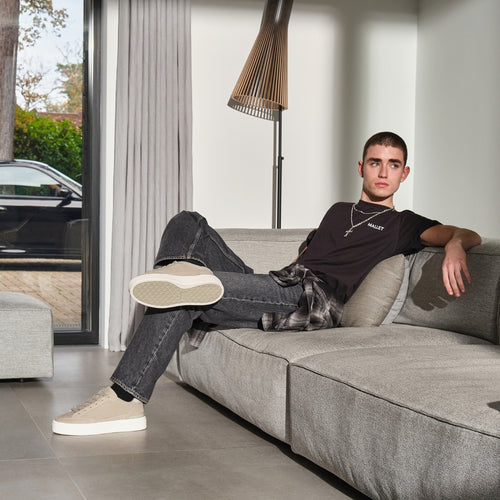 The Lansbury Neutral sneakers offer minimalist design with premium nubuck leather and refined craftsmanship. Designed in London, these premium leather sneakers feature a soft neutral upper, subtle branding, and a clean cupsole for a polished streetwear aesthetic.