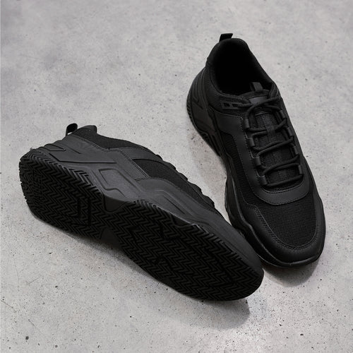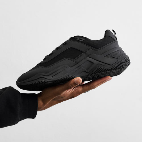 Engineered for urban adventure, the Odyssey Black Out sneakers from Mallet London bring Gorpcore-inspired design to premium streetwear. Designed in London, England, these premium hiker-style sneakers feature a layered upper of black leather, textured rubberised PU, and ripstop, with technical eyelets and sleek detailing for a modern, functional aesthetic.