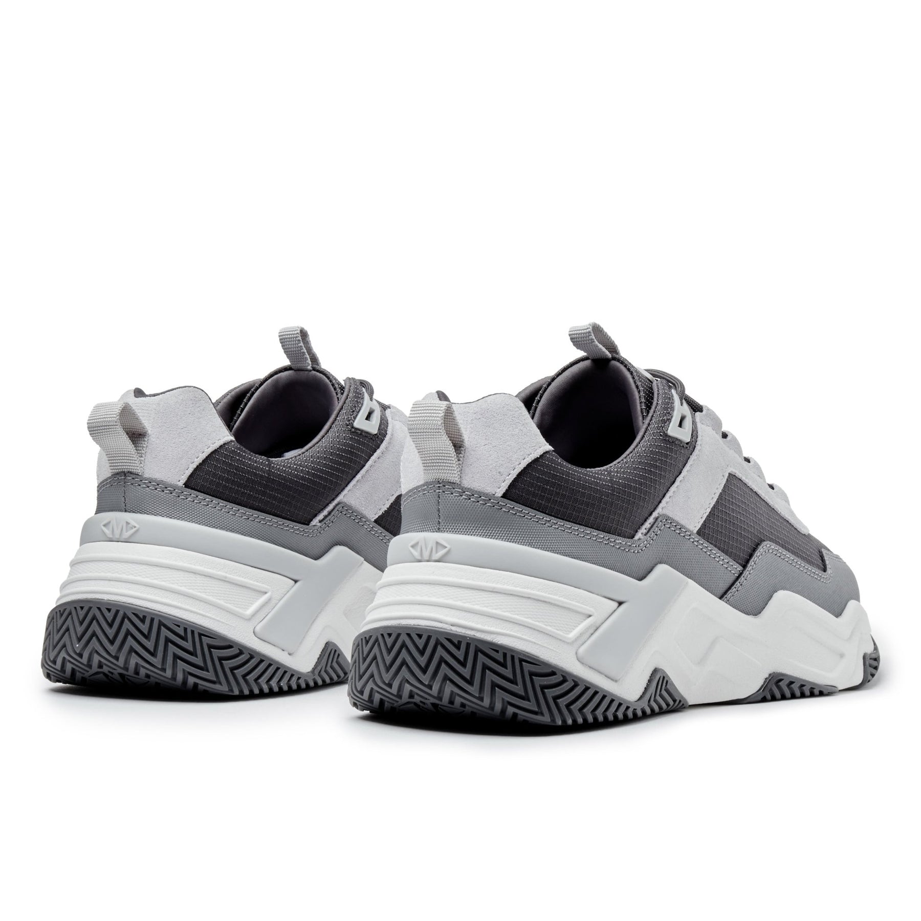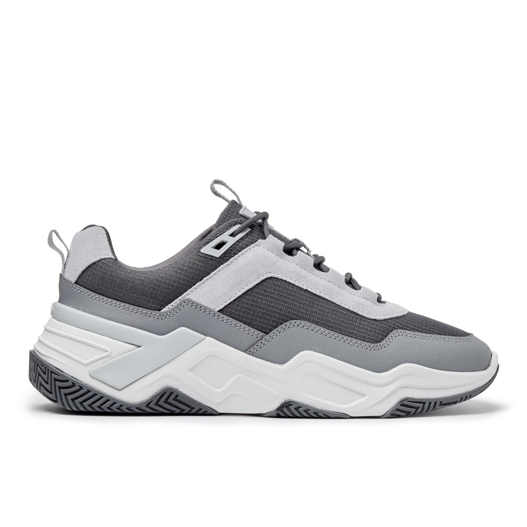 Men’s grey suede, rubberised PU and ripstop sneakers with white hiker-inspired sole