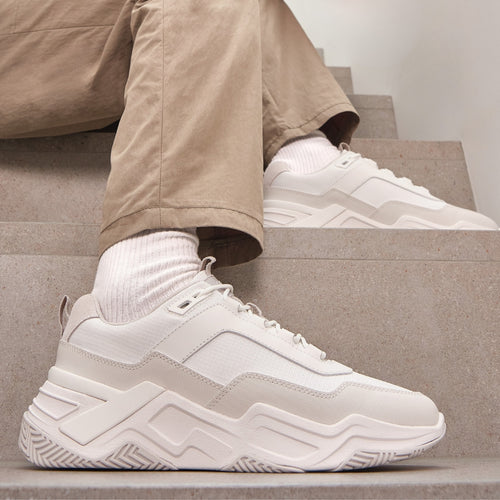 Men’s white leather, rubberised PU and ripstop sneakers with hiker-inspired sole
