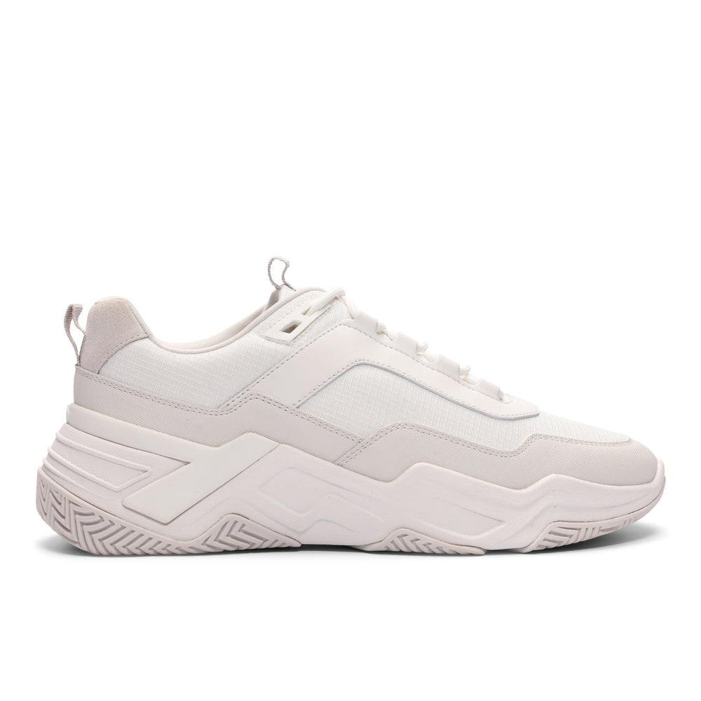 • Layered white ripstop, pale grey suede, and white leather upper for durability and premium aesthetics
