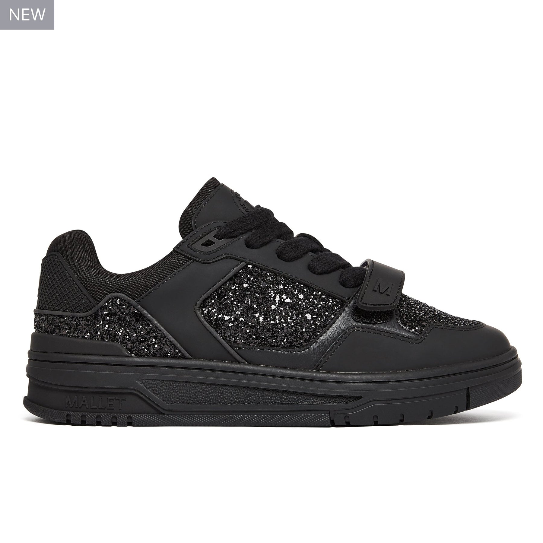 Volledig zwarte middenzool en buitenzool met matzwarte TPU-hielclip