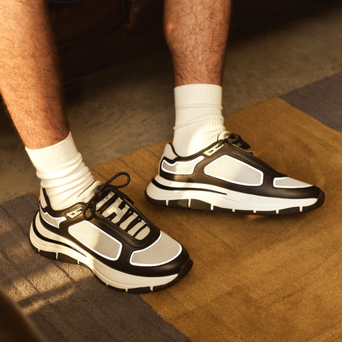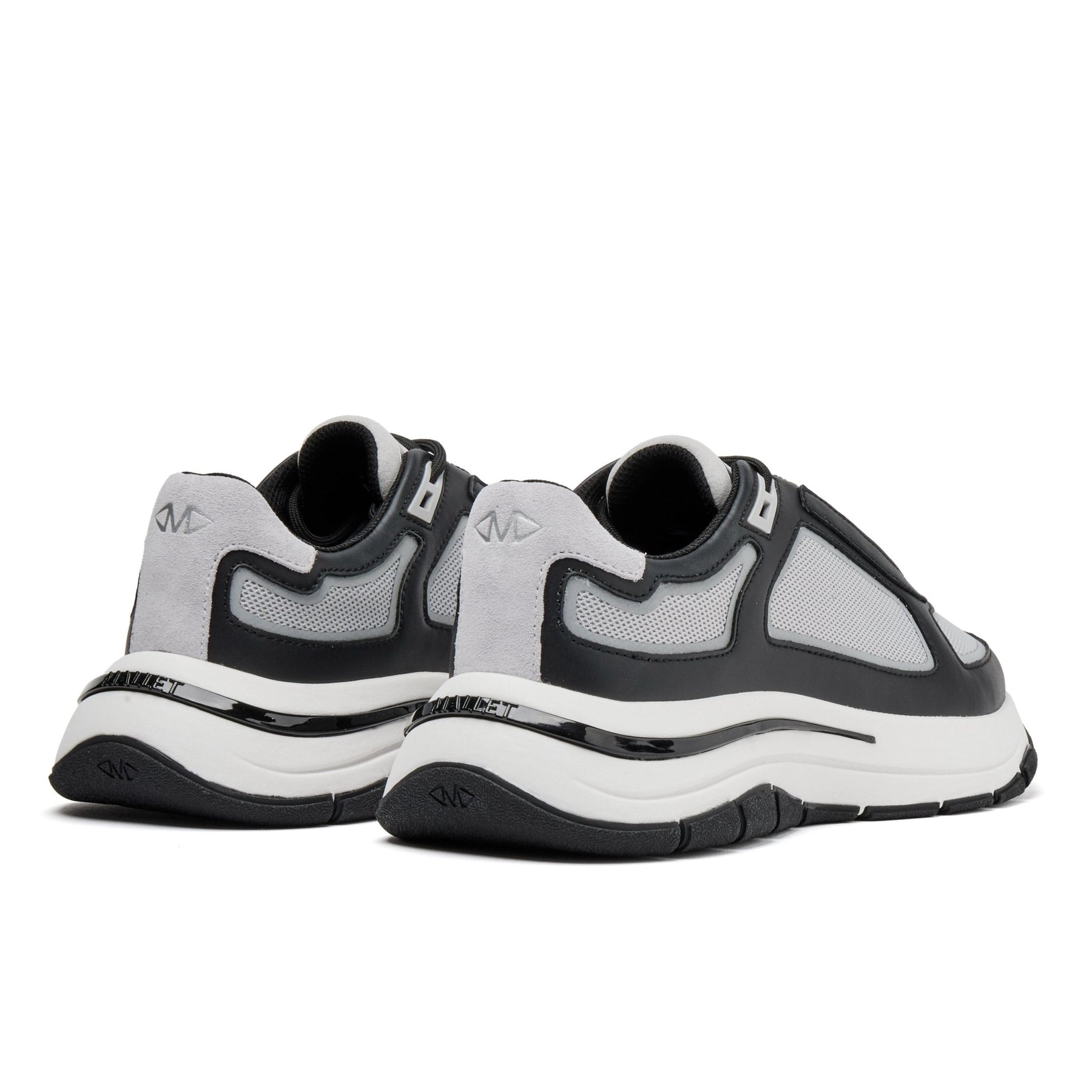 Alton Black Grey reinterprets MALLET’s contemporary sneaker DNA with a sharp monochrome contrast. A clean, technical upper is set on the bold Orb outsole, combining premium leather with chrome mesh and reflective detailing for a modern luxury trainer.