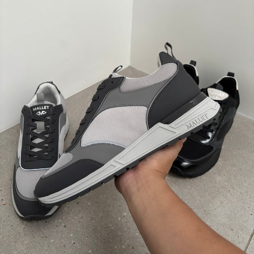 Sleek and minimal, the Bethnal Dark Grey sneakers represent Mallet London’s refined interpretation of contemporary streetwear. Expertly designed in London, these luxury sneakers combine layers of smooth and suede grey leather with a breathable mesh toe box. Reflective detailing and silver monogram branding add subtle contrast to the tonal silhouette.