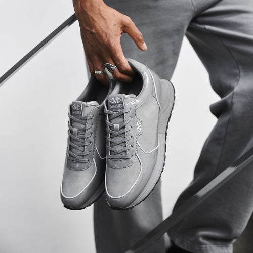 The Boundary Triple Grey Sneaker reimagines a MALLET classic through elevated materials and precise panel work. Crafted from premium nubuck and glossy leather, this luxury grey sneaker delivers modern refinement and urban versatility.
