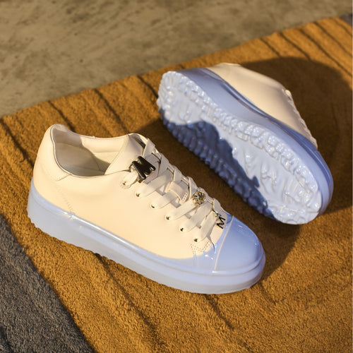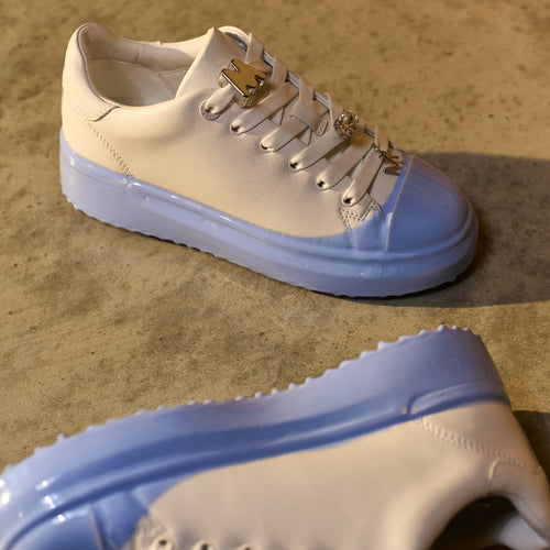 GRFTR Lite Blue Dip Womens delivers a clean, elevated low-top trainer finished with refined detailing and a fresh colour accent. Crafted from premium white leather and set on a light blue dip sole, this modern silhouette is designed for everyday luxury and comfort.