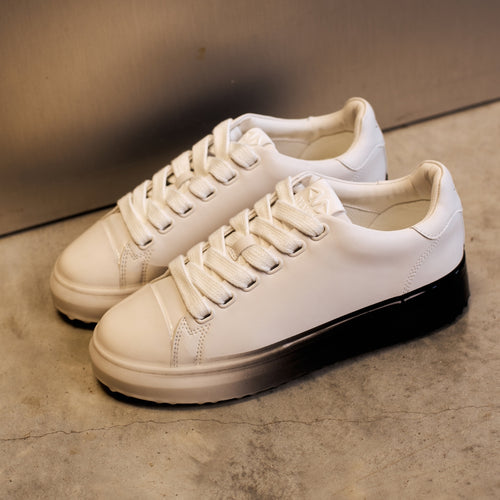 This low-top sneaker pairs minimalist design with premium materials for a refined, modern look. The clean white leather upper is complemented by tonal detailing and a distinctive fade dip outsole.