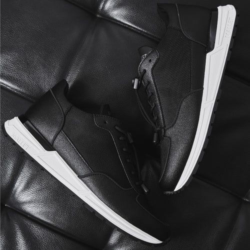 Engineered for everyday wear, the Popham Lite Ballistic Black Sneaker blends function and sophistication. Premium water-repellent materials meet a lightweight, flexible sole for a refined all-black finish with contrast white base.