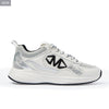Meet the Willow - a brand new sporty runner style sneaker featuring white leather, striking silver leather panels and dynamic contrast detailing. These premium women's sneakers showcase sophisticated mixed materials with lightweight design for modern luxury footwear appeal.